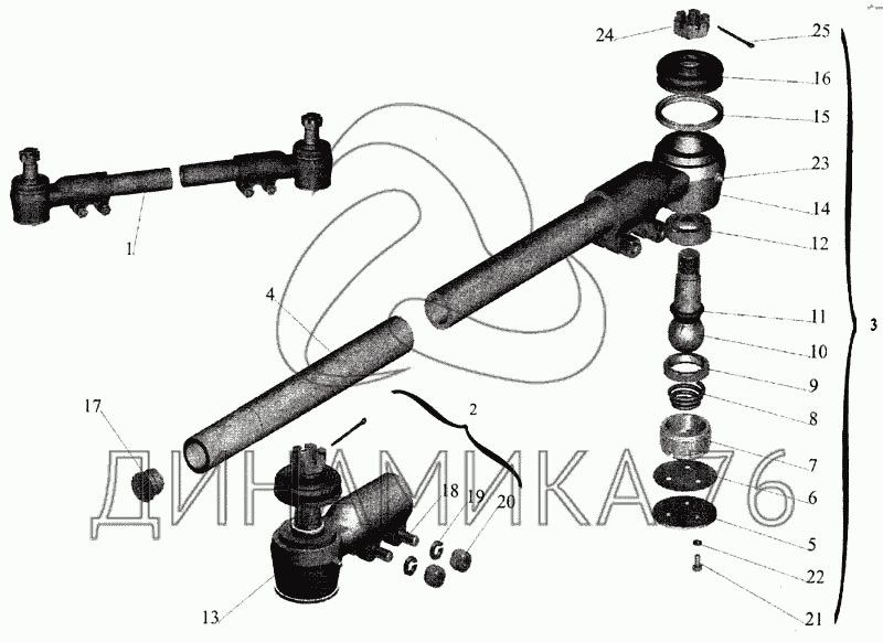Перечень комплектующих от Тяга поперечная рулевая на МАЗ-643068