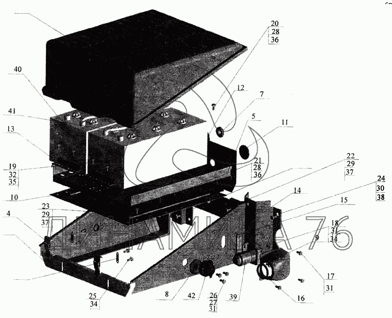 Схемы запчастей предназначены для справочных целей! Мы продаем не все запчасти от Установка аккумуляторных батарей на МАЗ-643068, представленные в этом списке.