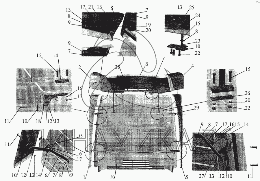 Схемы запчастей предназначены для справочных целей! Мы продаем не все запчасти от Установка обтекателя и закрылков на МАЗ-643068, представленные в этом списке.