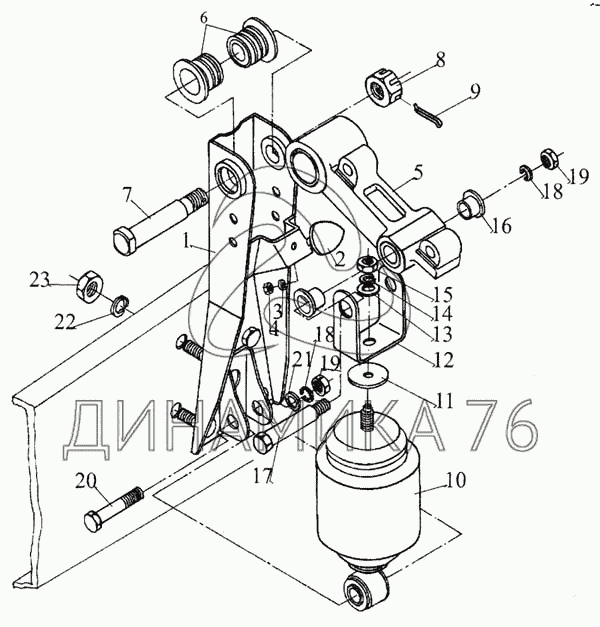 Перечень комплектующих от Заднее подрессоривание кабины на МАЗ-643068