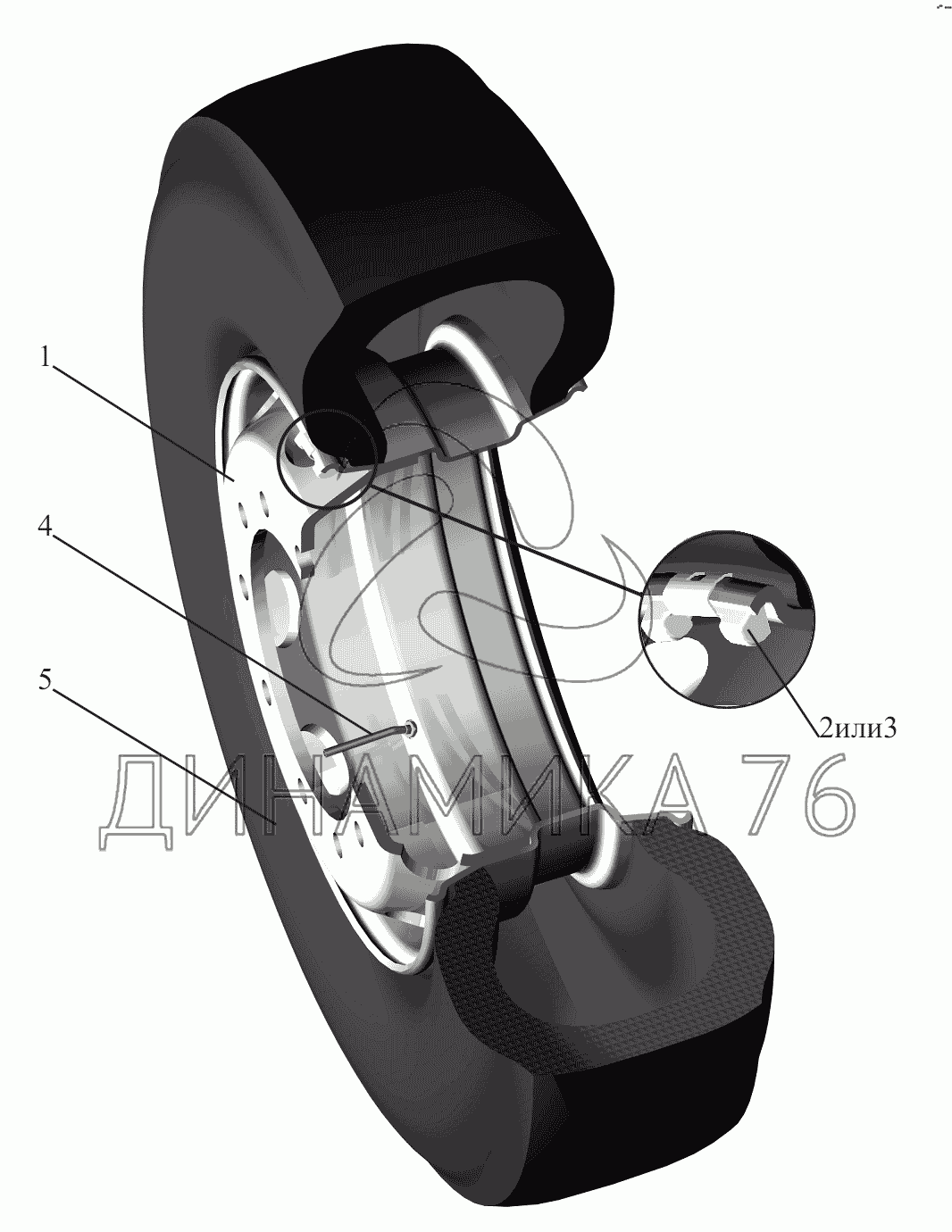 Колесо и шина на МАЗ-6430A8 (5440A8, 5440A5) (до 2008 г.)