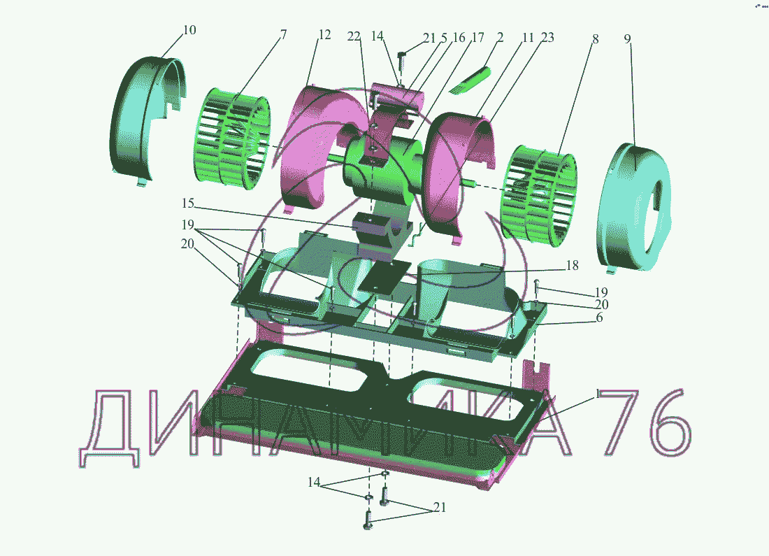 Схемы запчастей предназначены для справочных целей! Мы продаем не все запчасти от Блок вентиляторный на МАЗ-650108, представленные в этом списке.