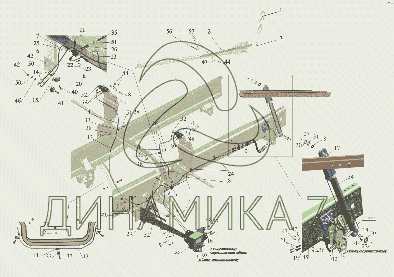 Перечень комплектующих от Механизм подъема кабины 650108-5000040 на МАЗ-650108