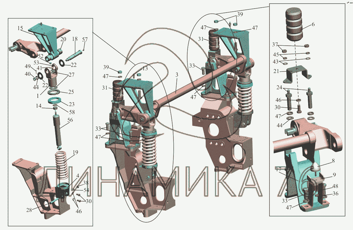Переднее подрессоривание кабины 6430-5001700-10 — МАЗ-650108: