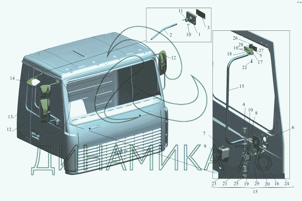 Схемы запчастей предназначены для справочных целей! Мы продаем не все запчасти от Установка зеркал 6430-8200005 на МАЗ-650108, представленные в этом списке.