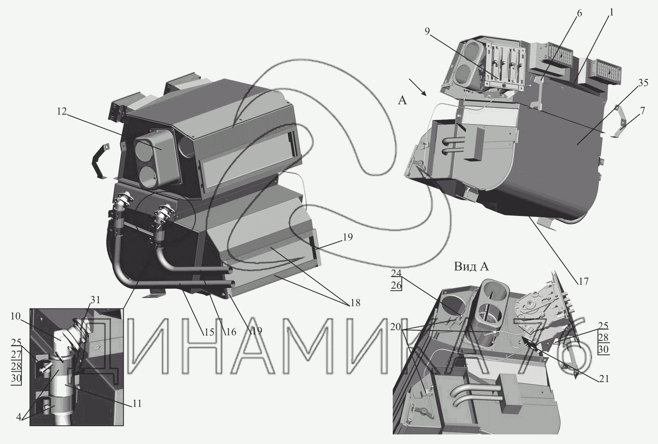 Перечень комплектующих от Отопитель 544019-8101010-010 на МАЗ-650119