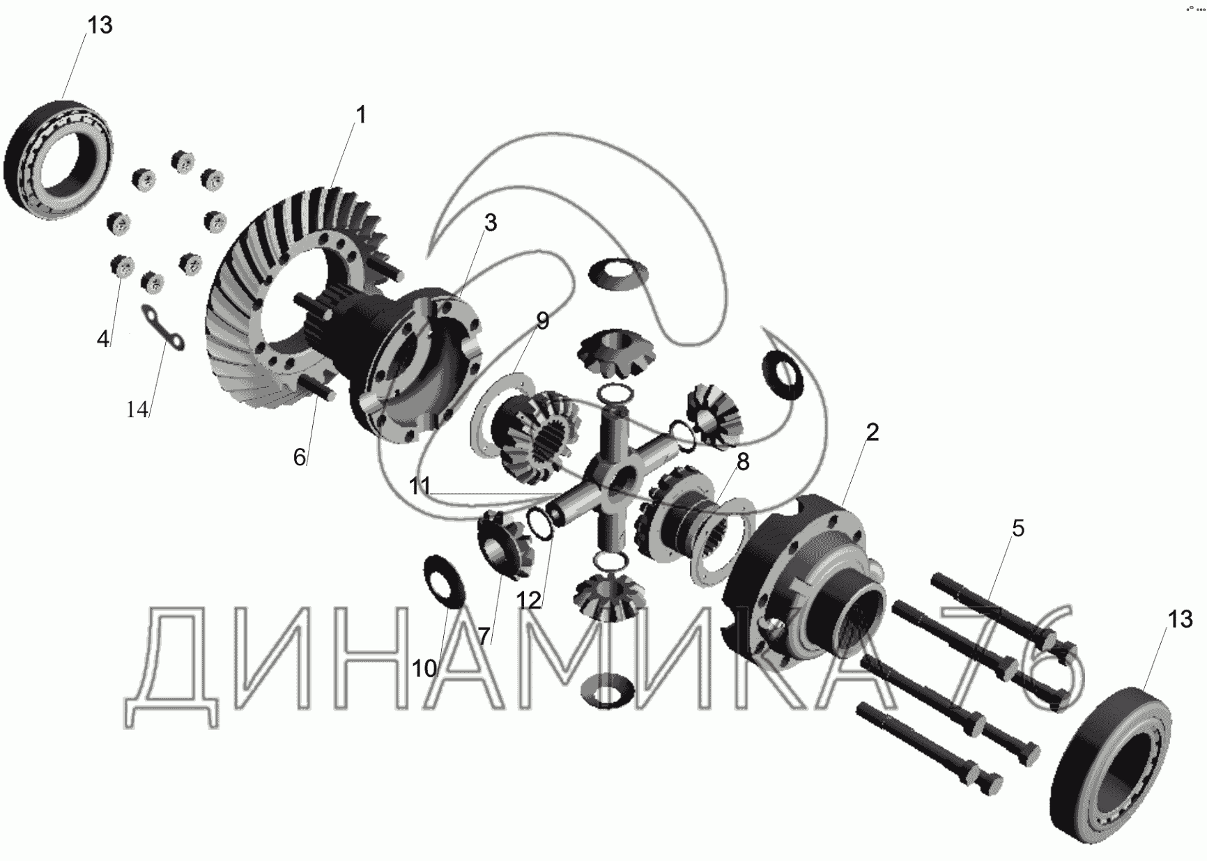 Перечень комплектующих от Редуктор заднего моста. Дифференциал на МАЗ-650119