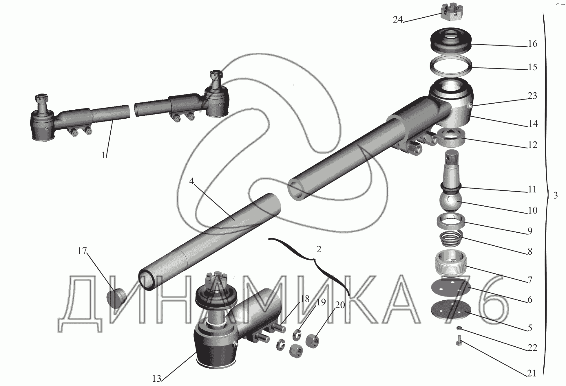 Перечень комплектующих от Тяга поперечная рулевая 64221-3003052 на МАЗ-650119