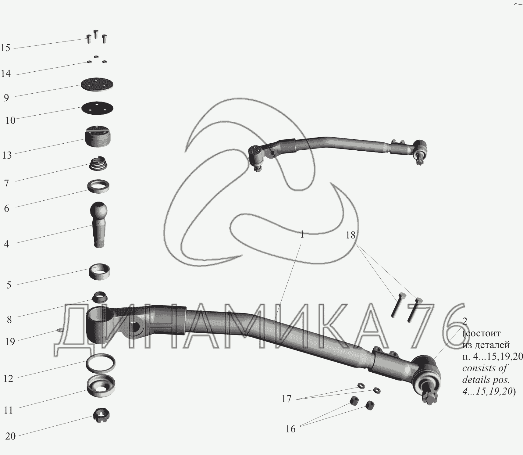 Перечень комплектующих от Тяга продольная 5440-3003010 на МАЗ-650119