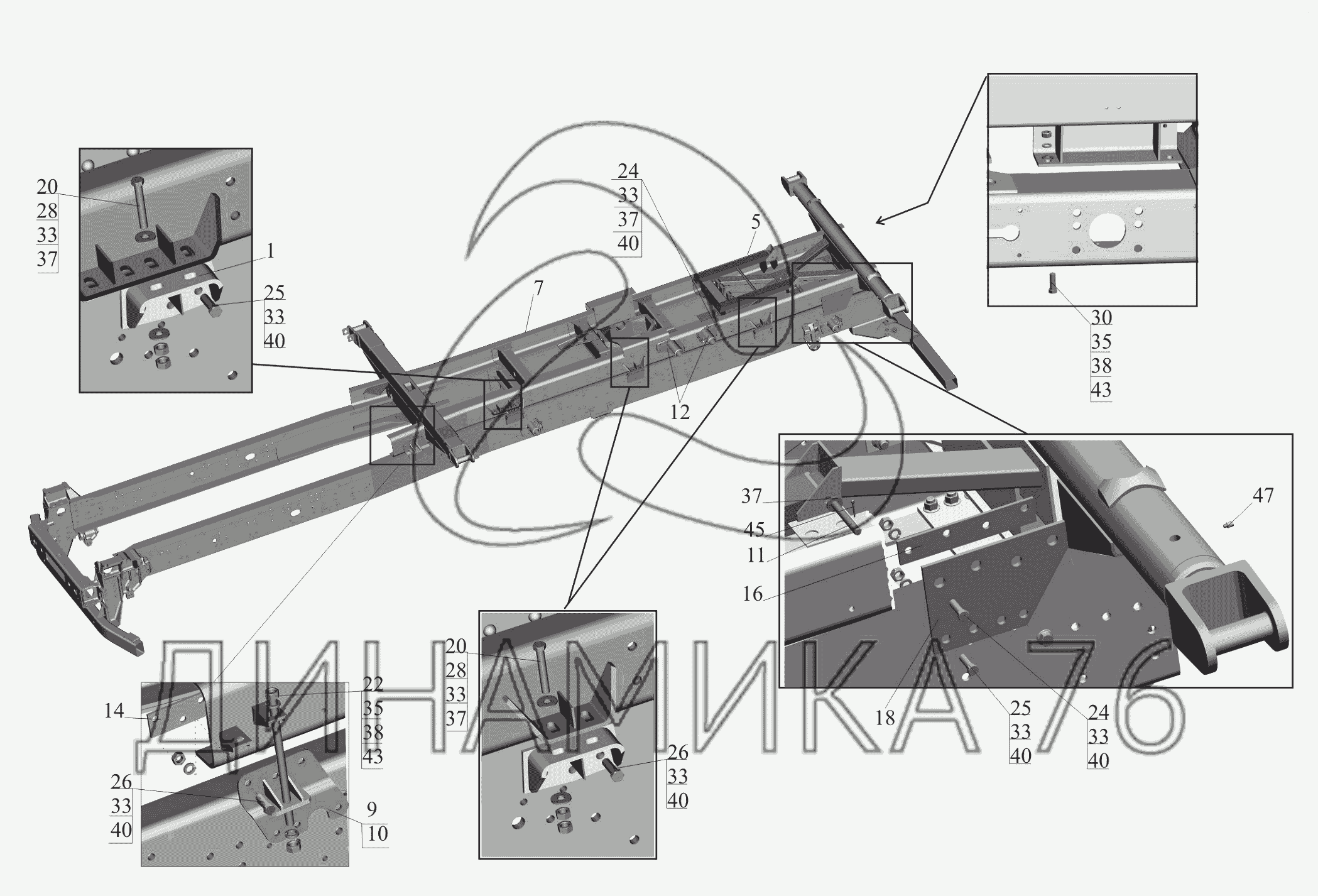 Перечень комплектующих от Установка надрамника 650119-8600002 на МАЗ-650119
