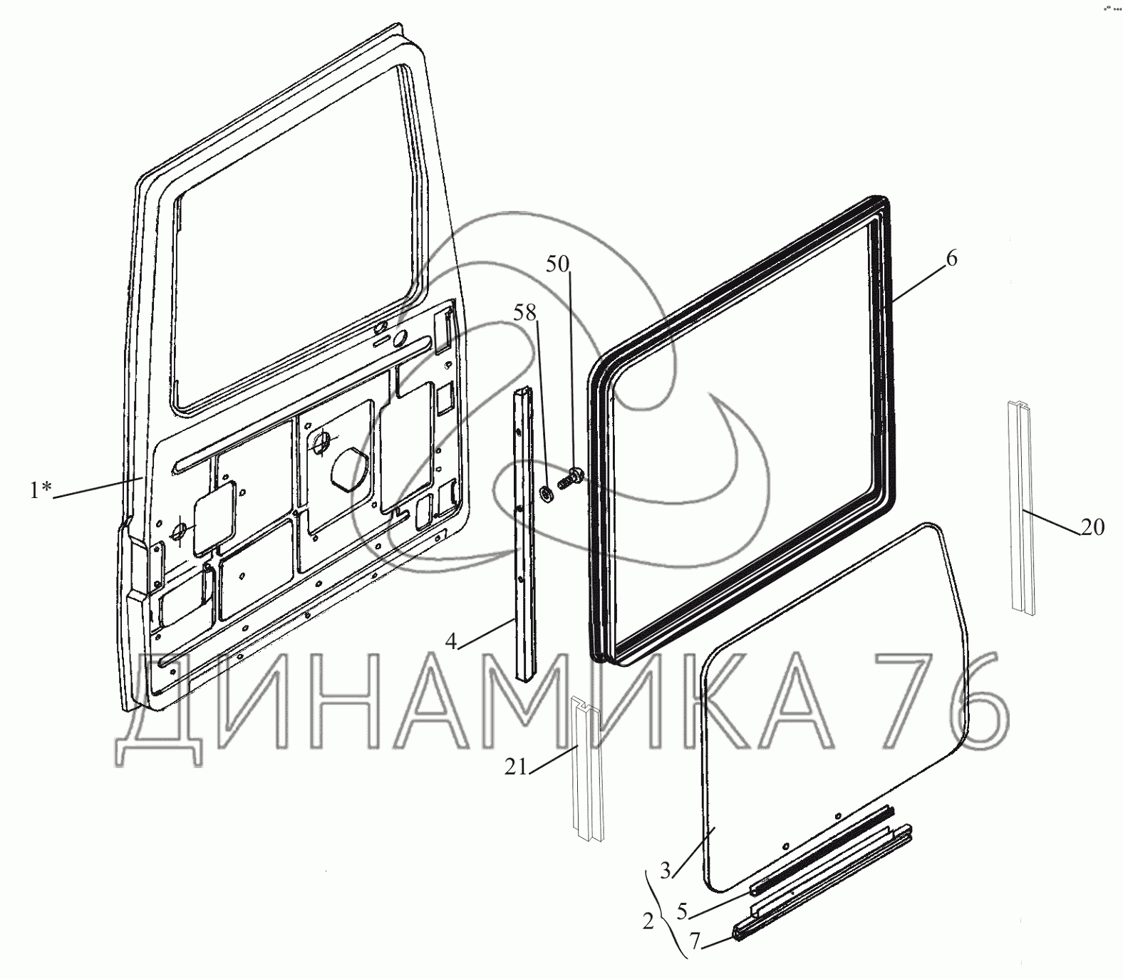Перечень комплектующих от Установка опускного стекла на МАЗ-650119