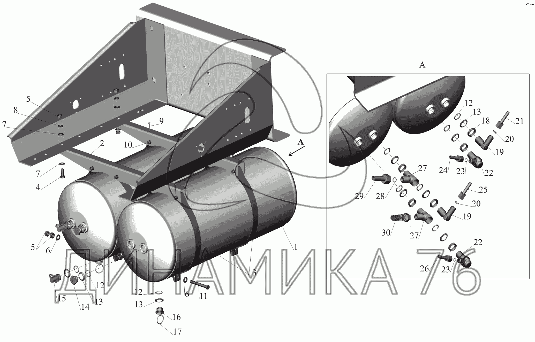 Перечень комплектующих от Установка ресиверов 643020-3513004 на МАЗ-650119