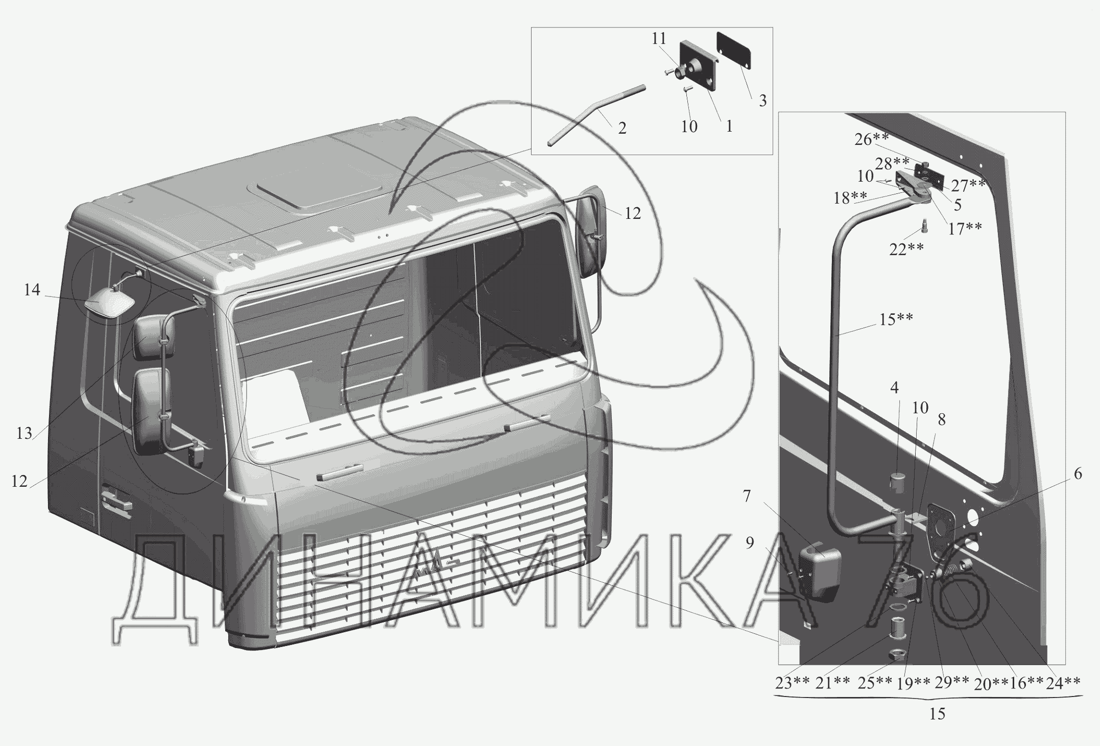 Установка зеркал 6430-8200005 — МАЗ-650119: