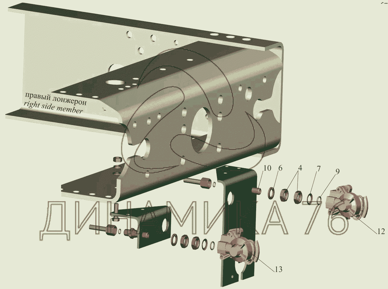 Схемы запчастей предназначены для справочных целей! Мы продаем не все запчасти от Пневмовывод к прицепу 555105-3521004 на МАЗ-6501B9, представленные в этом списке.