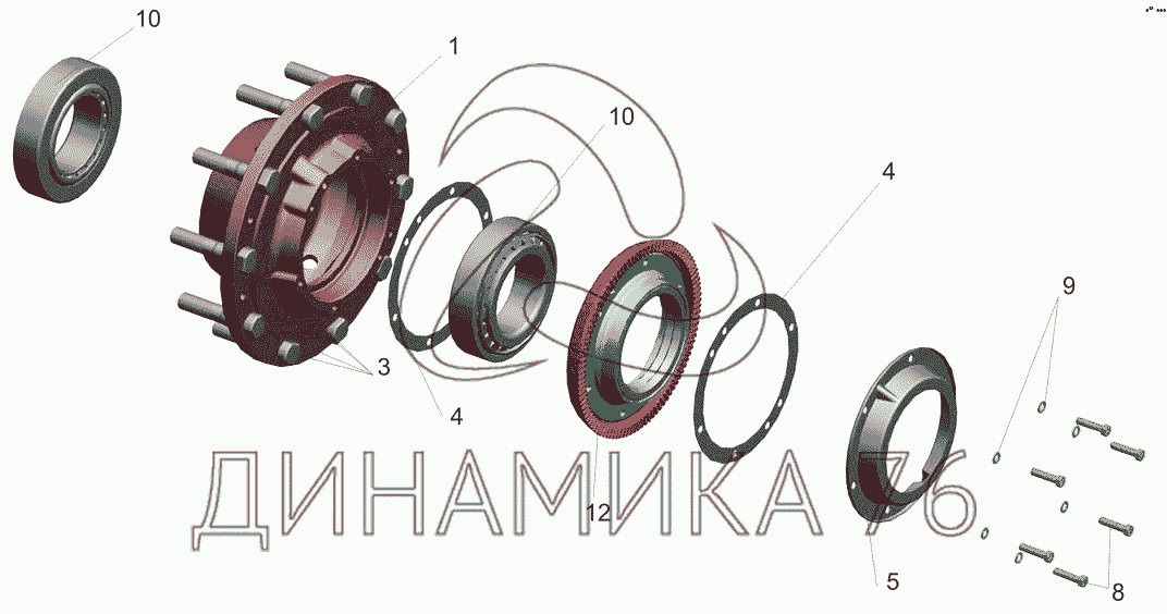 Схемы запчастей предназначены для справочных целей! Мы продаем не все запчасти от Ступица с крышкой на МАЗ-6501B9, представленные в этом списке.