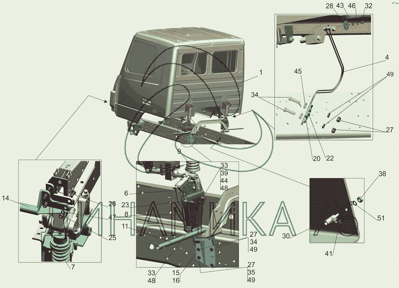 Схемы запчастей предназначены для справочных целей! Мы продаем не все запчасти от Установка кабины 6501В9-5000002-060 на МАЗ-6501B9, представленные в этом списке.