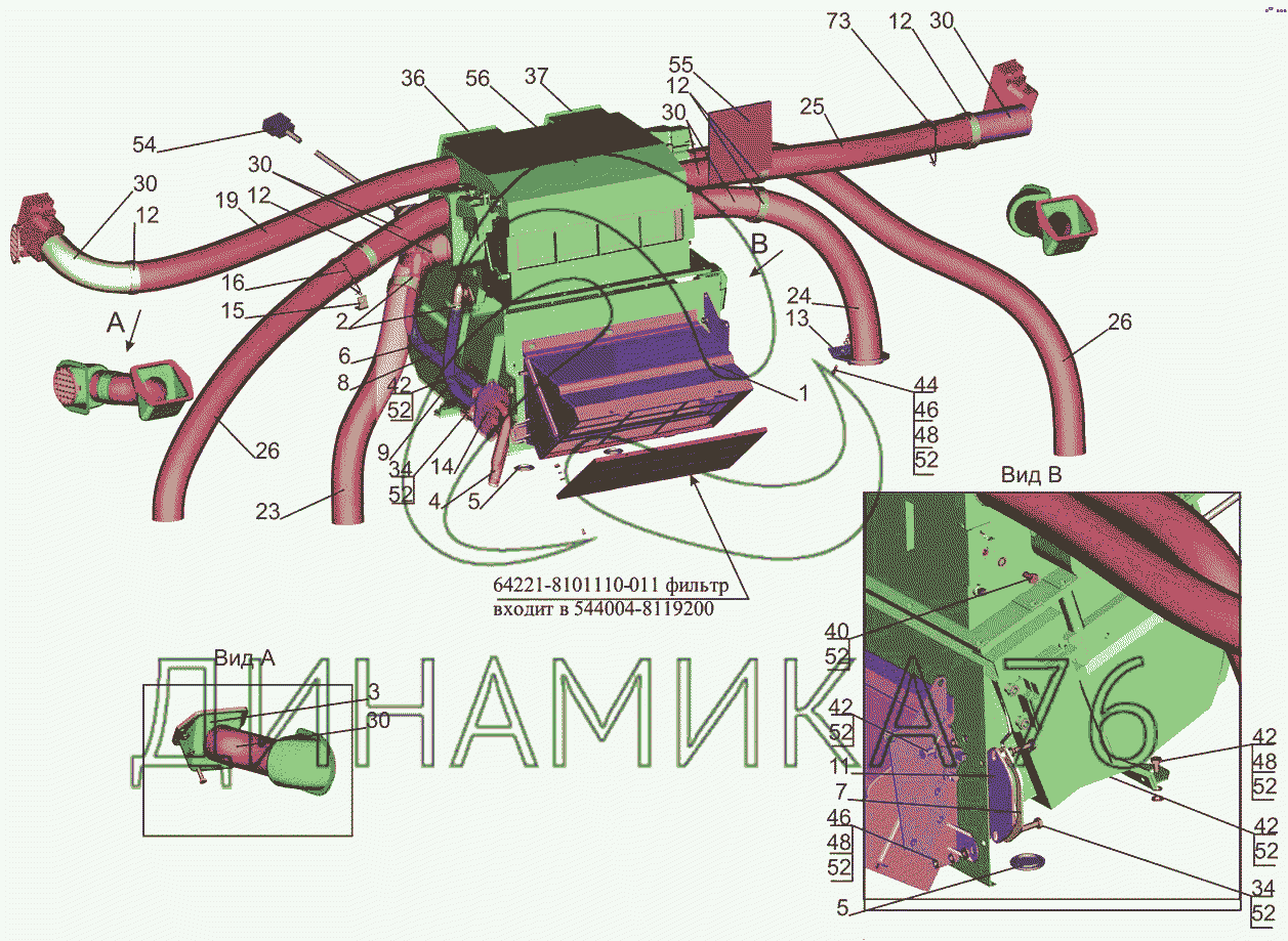 Схемы запчастей предназначены для справочных целей! Мы продаем не все запчасти от Установка отопителя 643008-8100001 на МАЗ-6501B9, представленные в этом списке.
