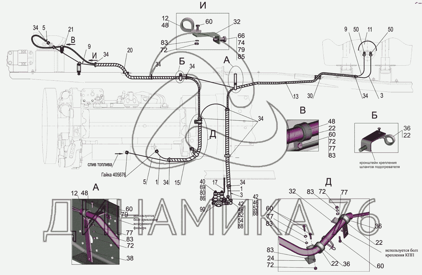 Перечень комплектующих от Установка топливопроводов 6501B9-1104002-020 на МАЗ-6501B9