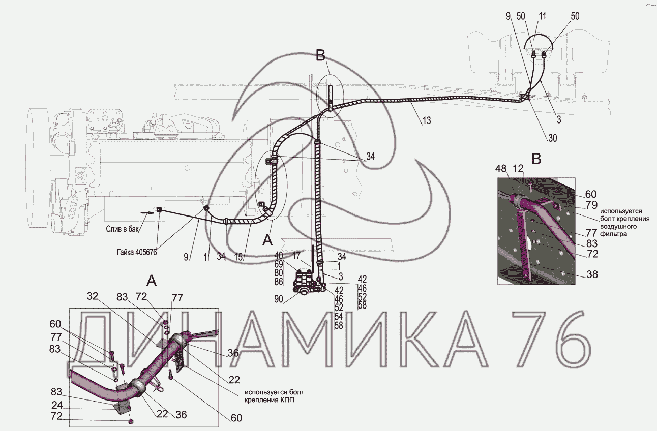 Установка топливопроводов 6501B9-1104002-030 — МАЗ-6501B9: