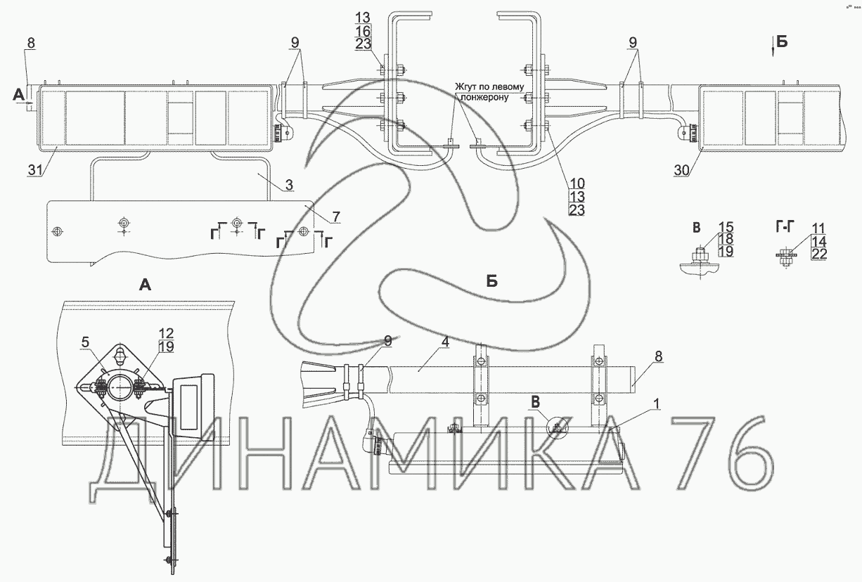 Перечень комплектующих от Установка задних фонарей 6501А5-3700009 на МАЗ-6501B9