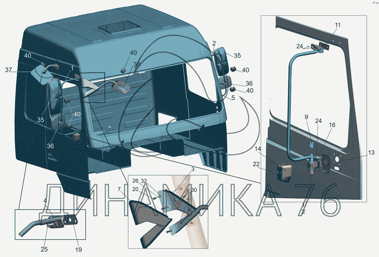 Схемы запчастей предназначены для справочных целей! Мы продаем не все запчасти от Установка зеркал 6430-8200005 на МАЗ-6501B9, представленные в этом списке.