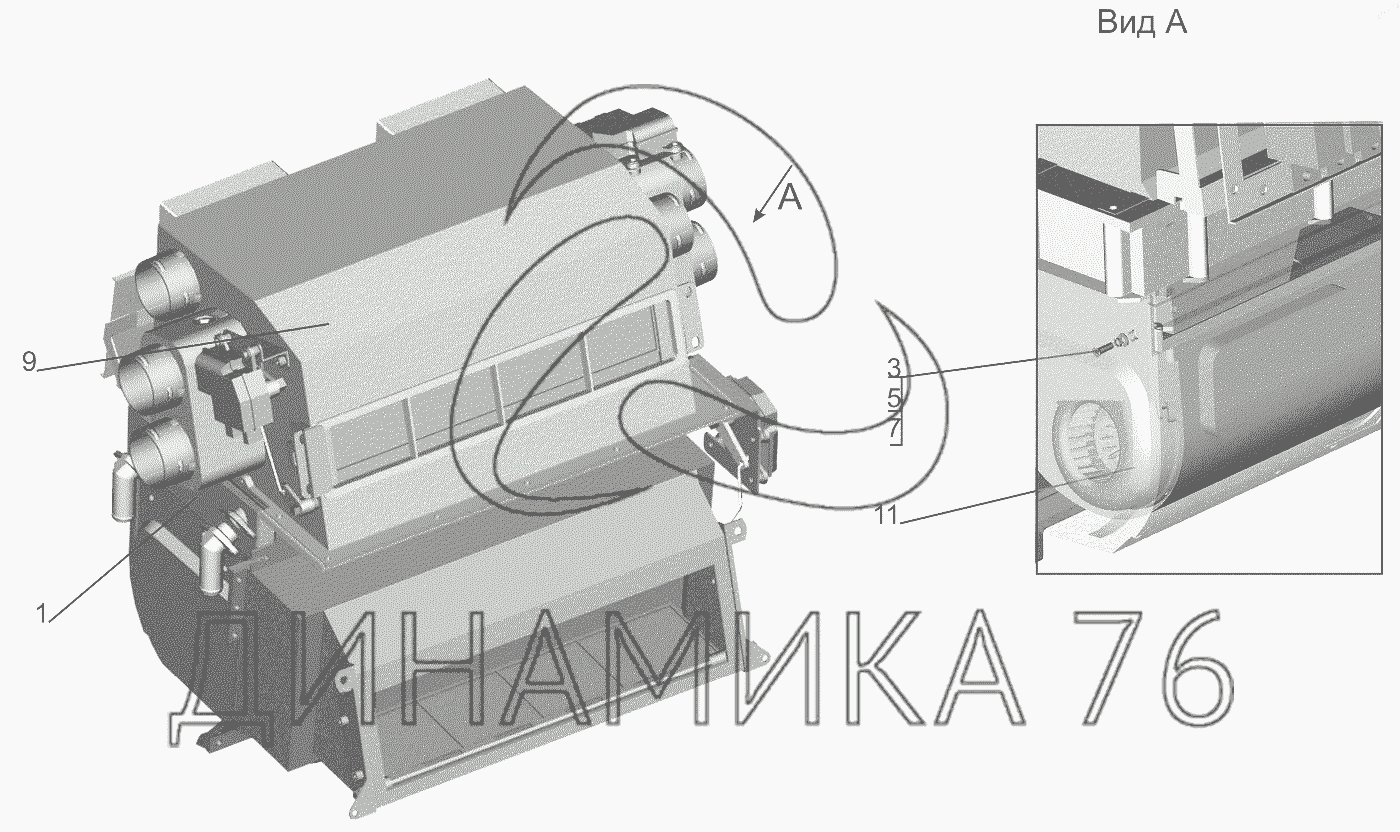 Перечень комплектующих от Отопитель 631019-8101010 на МАЗ-6501B9