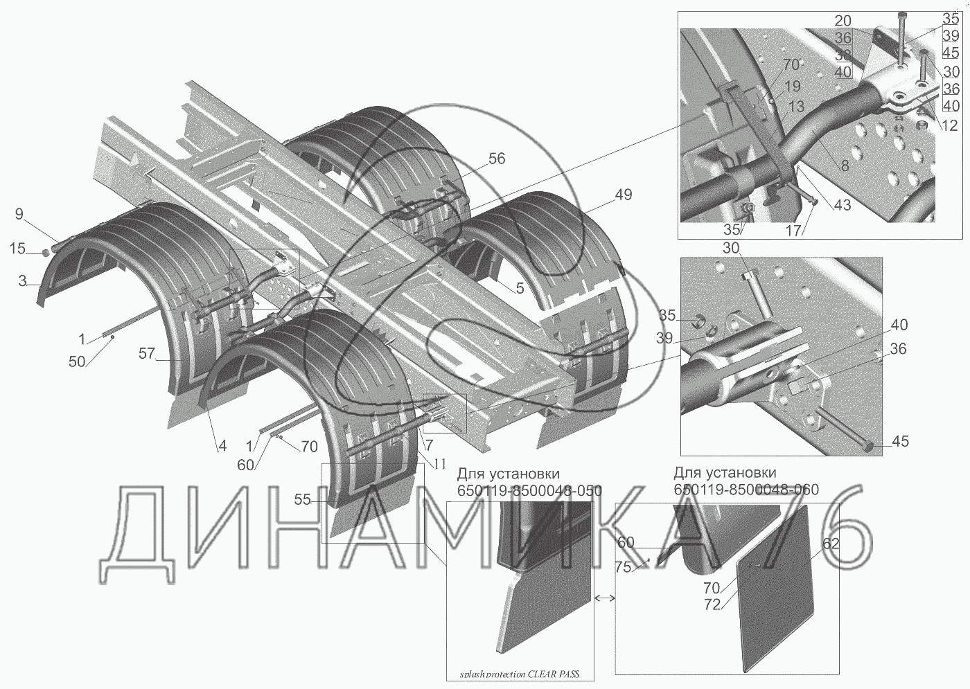 Схемы запчастей предназначены для справочных целей! Мы продаем не все запчасти от Установка крыльев на МАЗ-6501B9, представленные в этом списке.