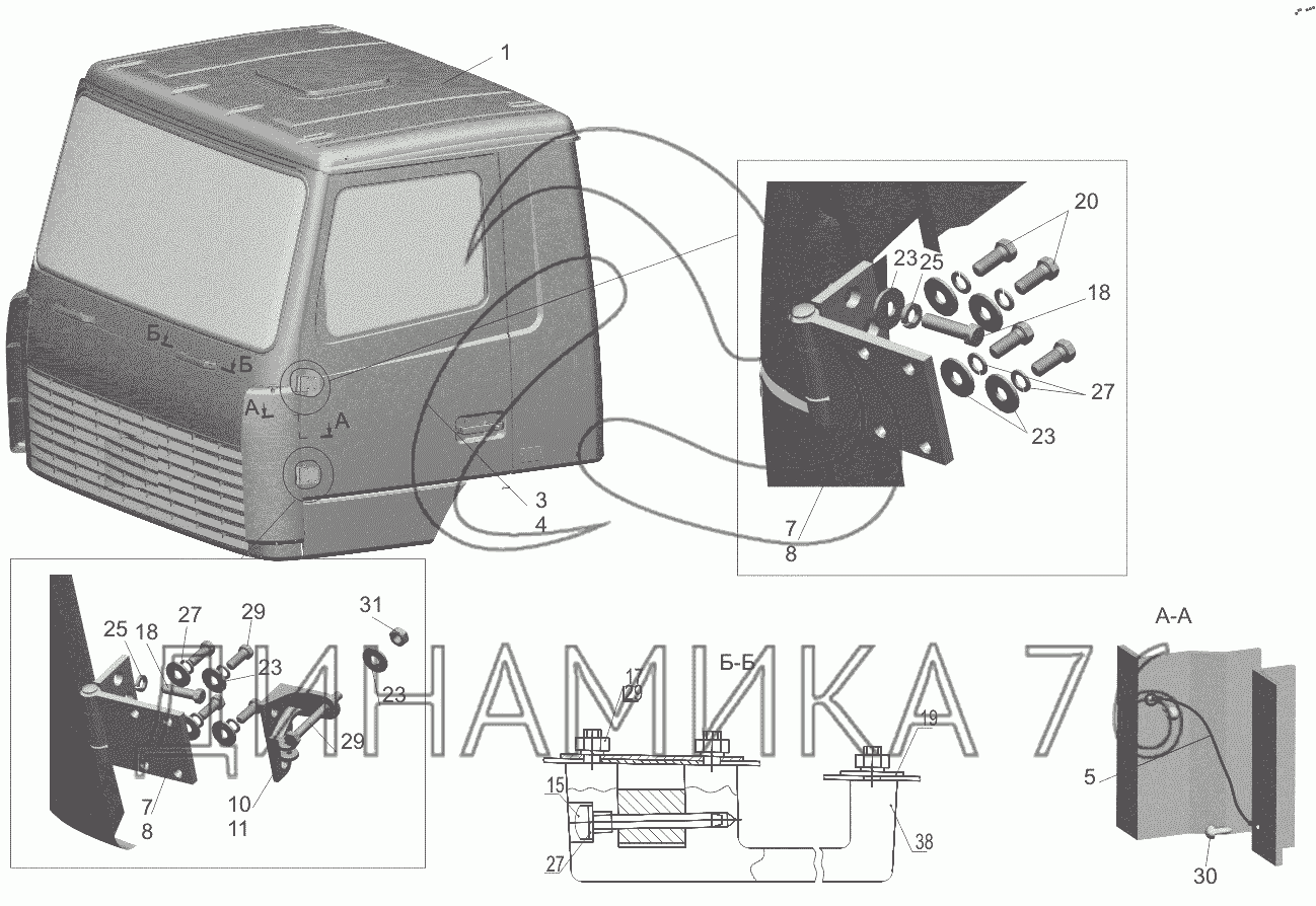 Перечень комплектующих от Кабина 6501-5000022 на МАЗ-651608