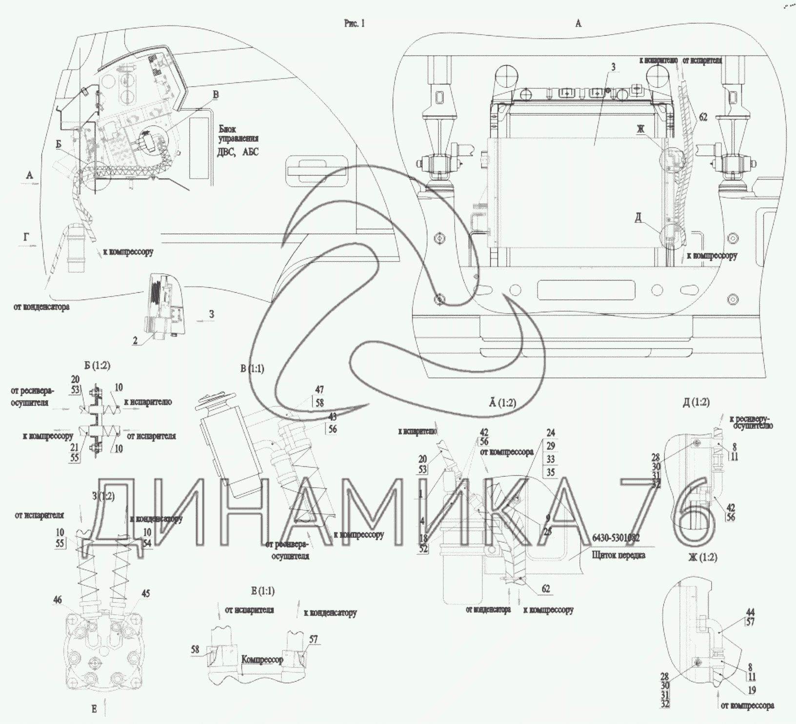 Схемы запчастей предназначены для справочных целей! Мы продаем не все запчасти от Установка кондиционера 643008-8100004 на МАЗ-651608, представленные в этом списке.