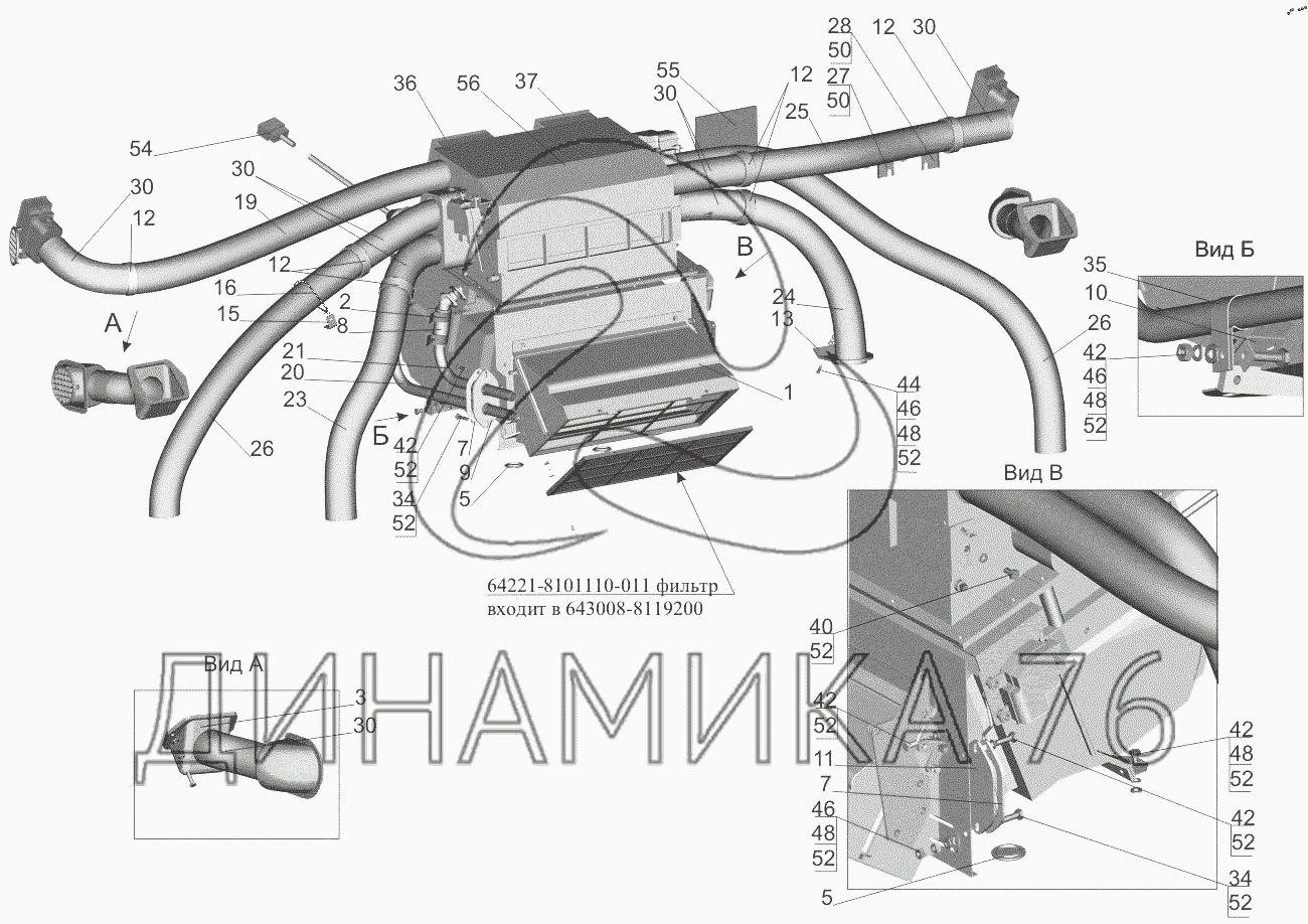 Перечень комплектующих от Установка отопителя 631019-8100001 на МАЗ-651608