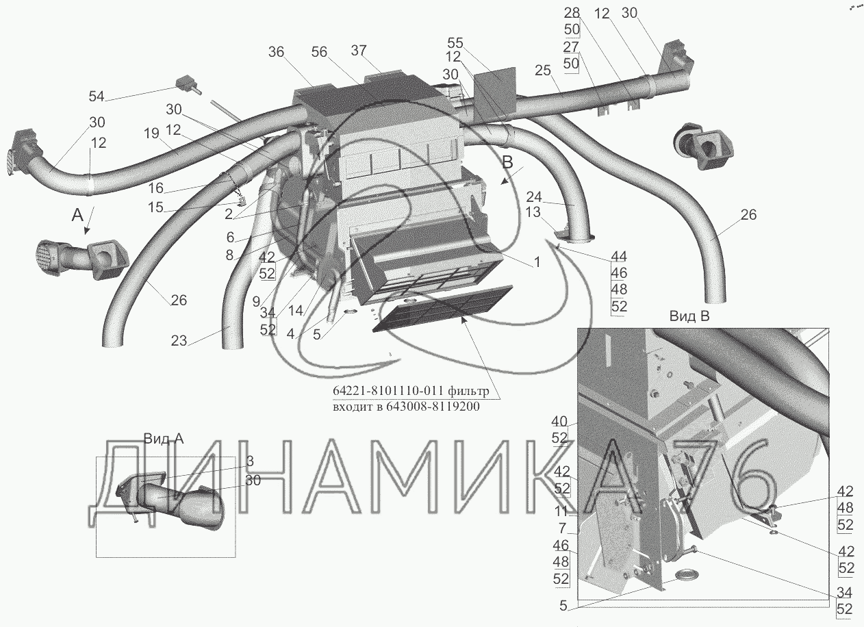 Схемы запчастей предназначены для справочных целей! Мы продаем не все запчасти от Установка отопителя 643008-8100001 на МАЗ-651608, представленные в этом списке.