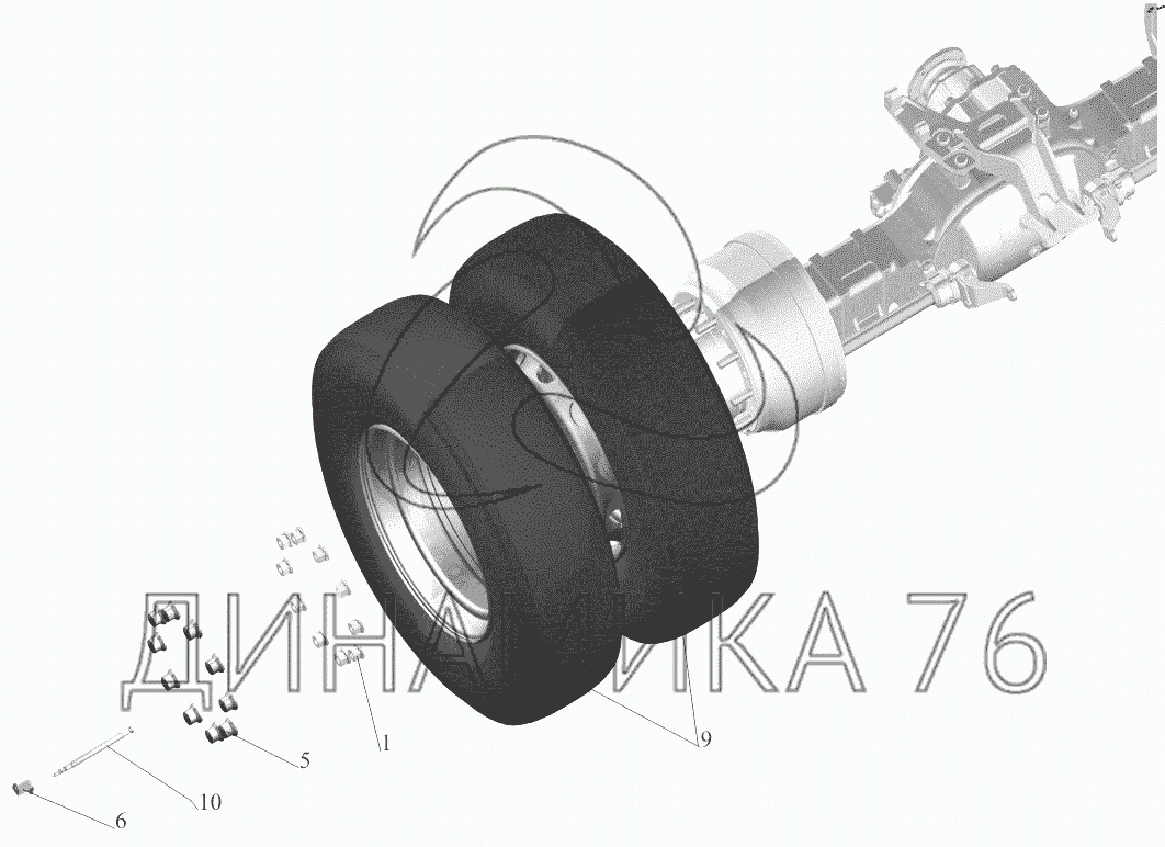 Перечень комплектующих от Установка задних колес на МАЗ-651608