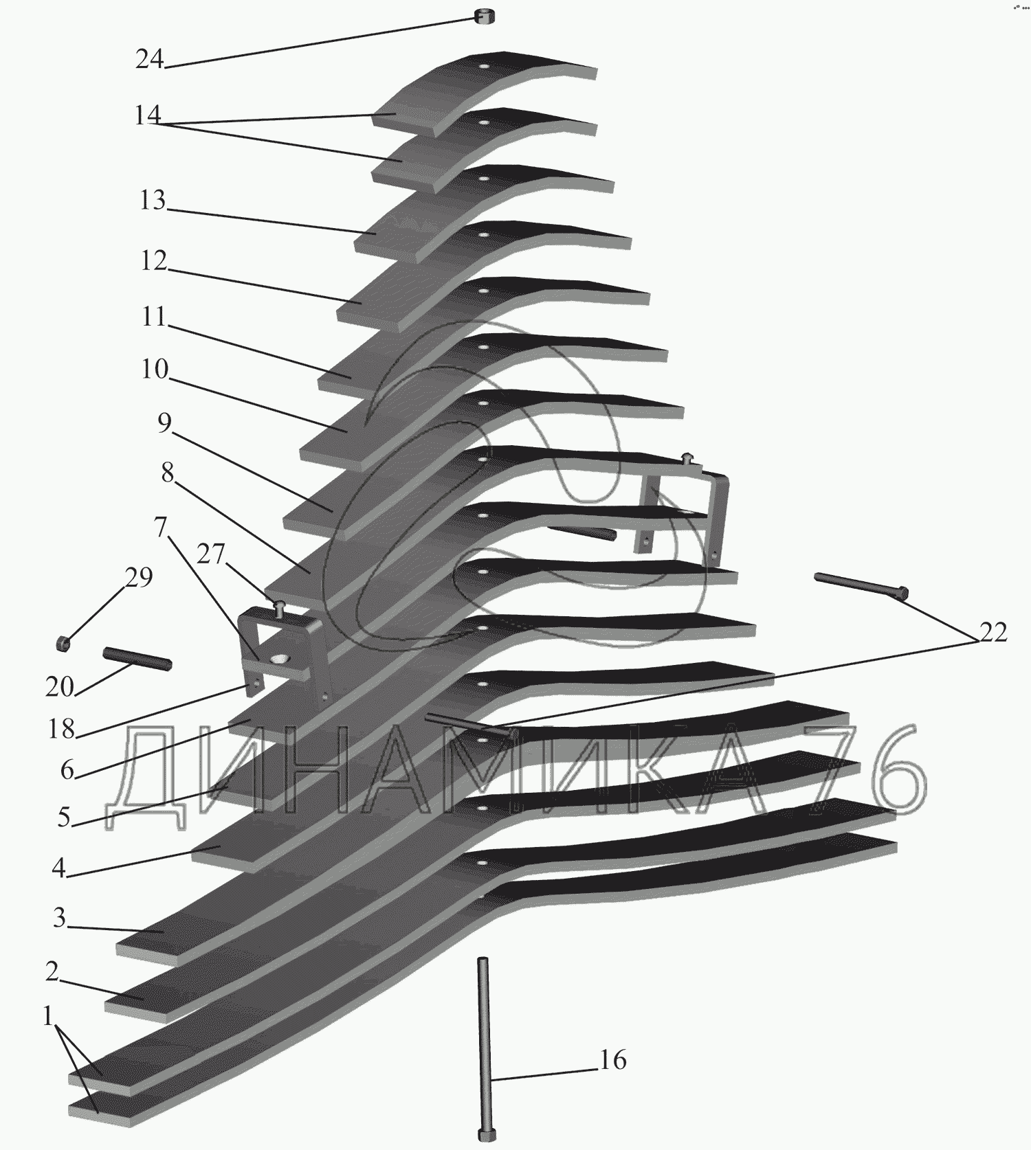 Перечень комплектующих от Рессора задняя 55165-2912012-010 на МАЗ-651669-320 (340)