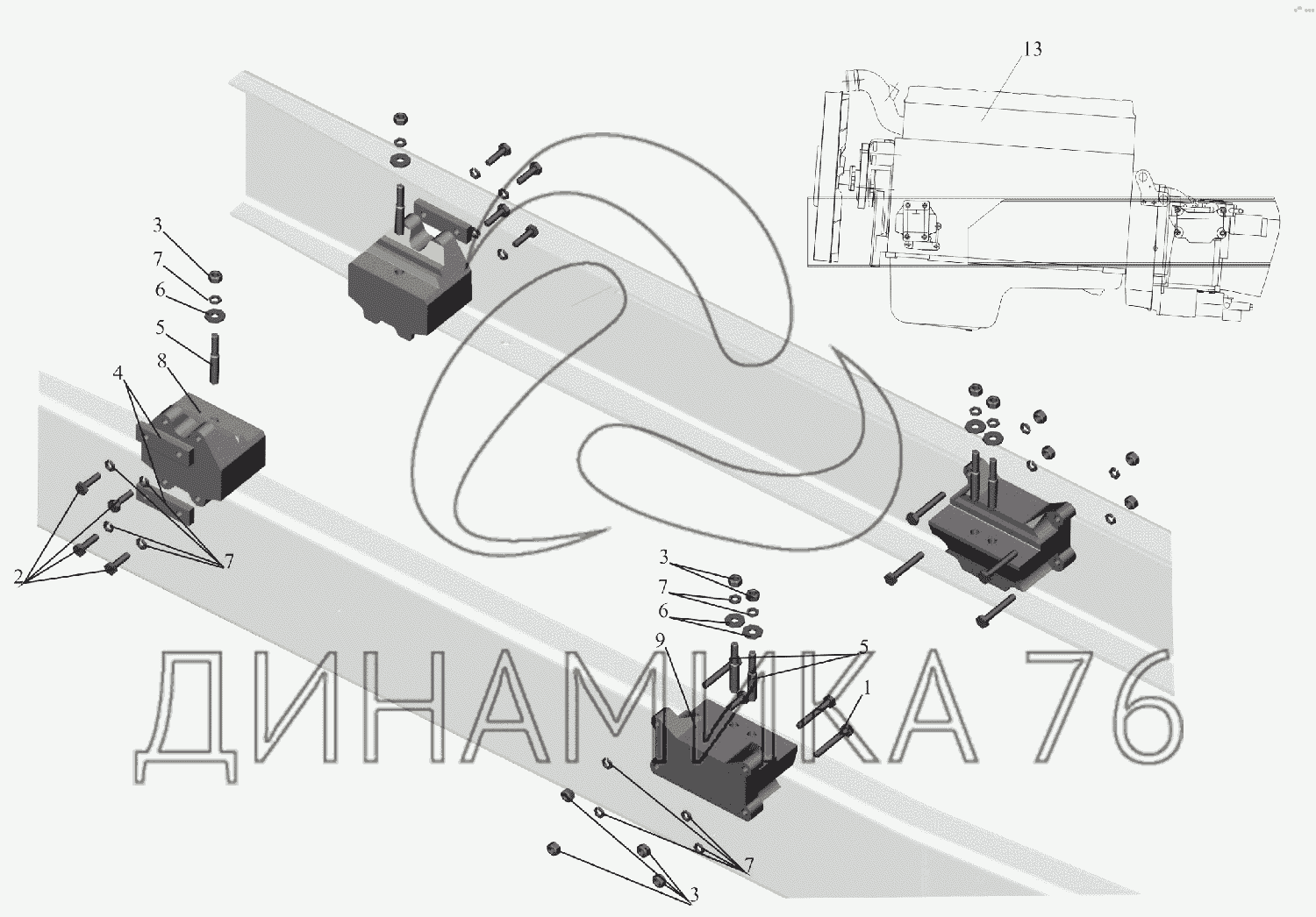 Перечень комплектующих от Крепление двигателя на МАЗ-6516V8-520 (6516V8-540)
