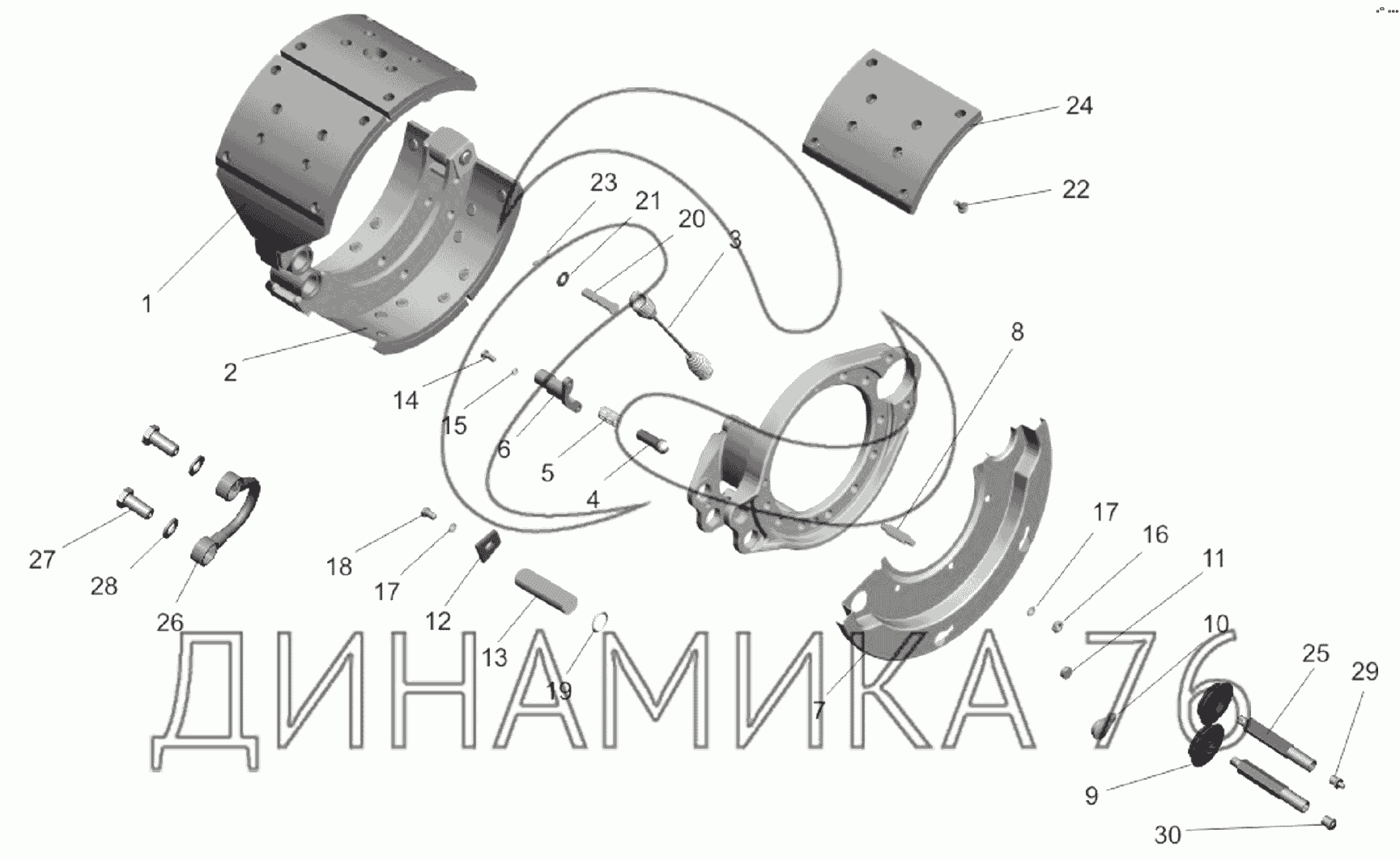 Перечень комплектующих от Тормоз колеса заднего моста на МАЗ-651705
