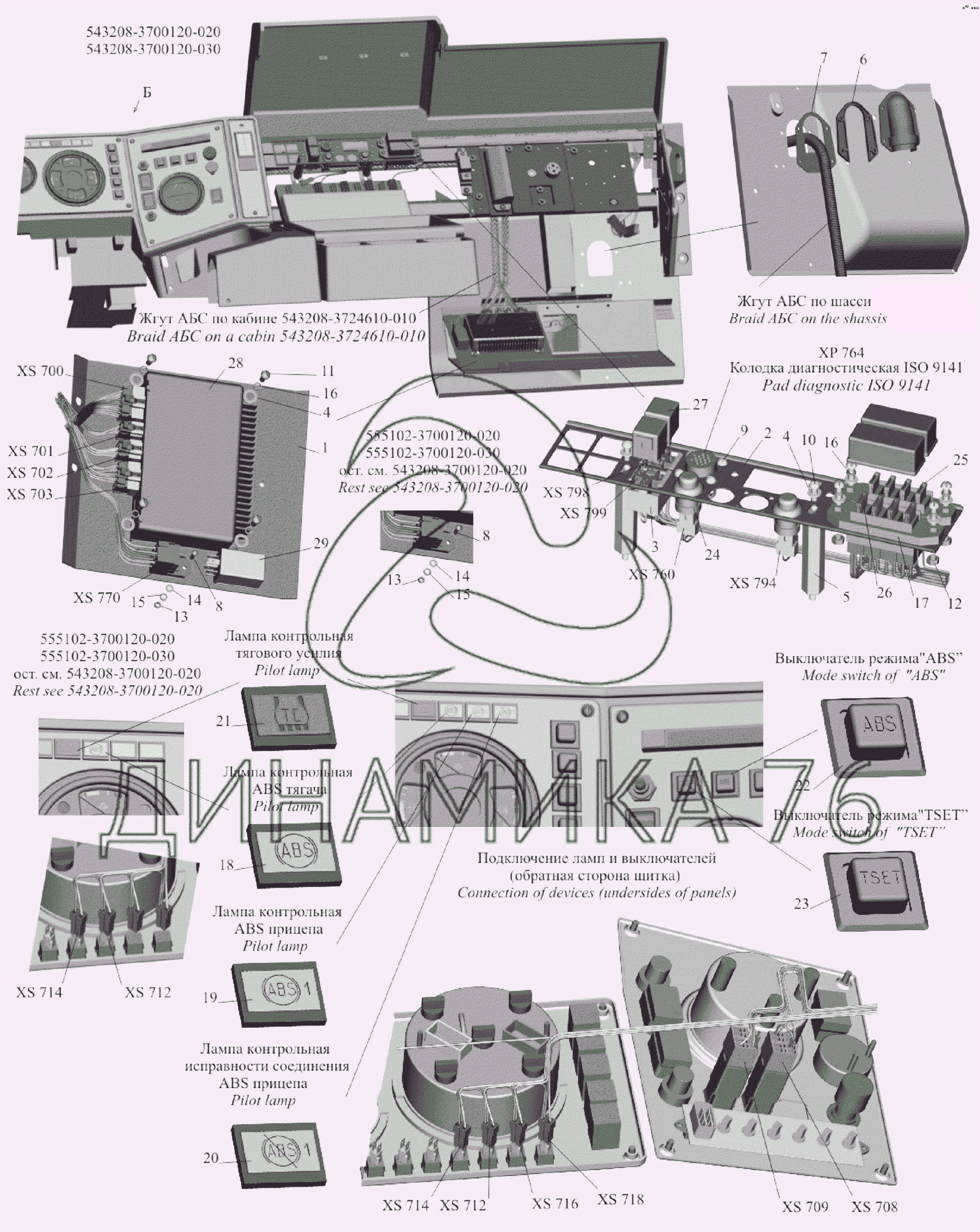 Перечень комплектующих от Установка АБС по кабине на МАЗ-651705