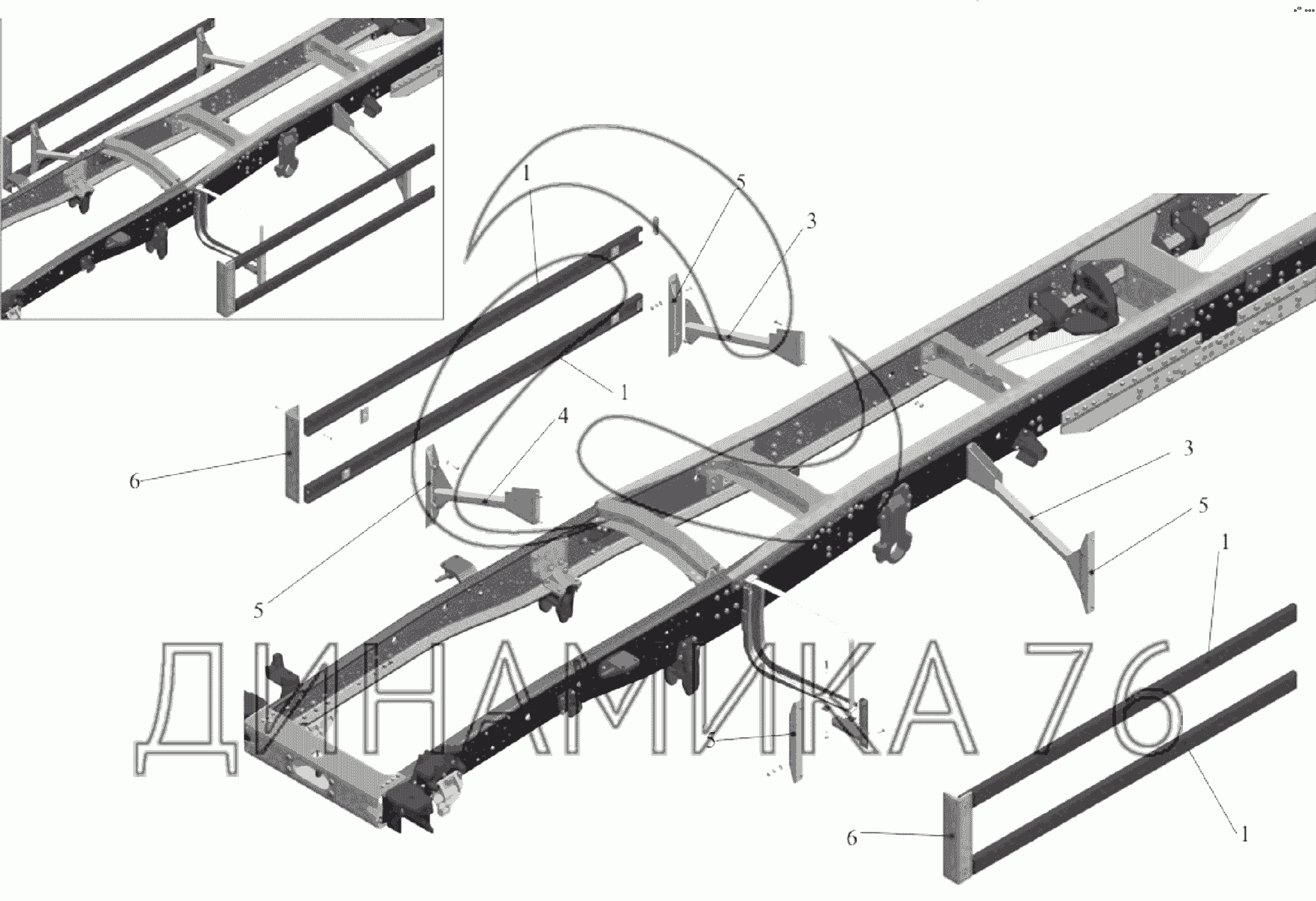 Перечень комплектующих от Установка бокового ограждения 651705-2800040 на МАЗ-651705