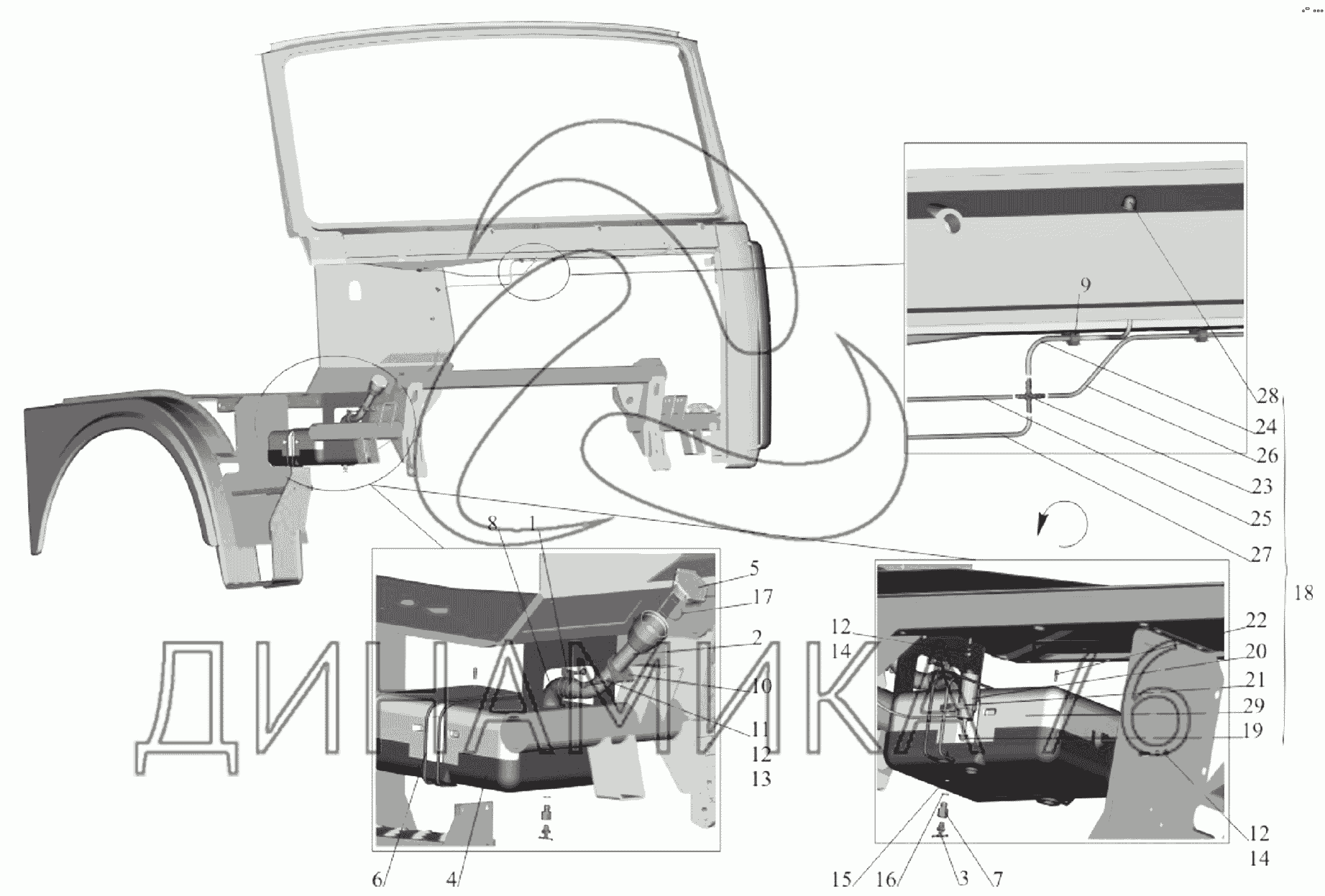 Установка омывателя 64221-5200008-01 — МАЗ-651705: