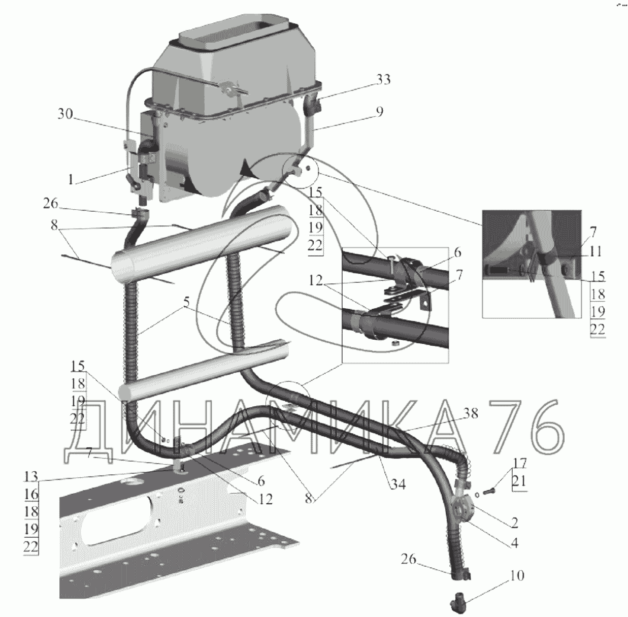 Установка шлангов отопителя 54327-8100006 — МАЗ-651705: