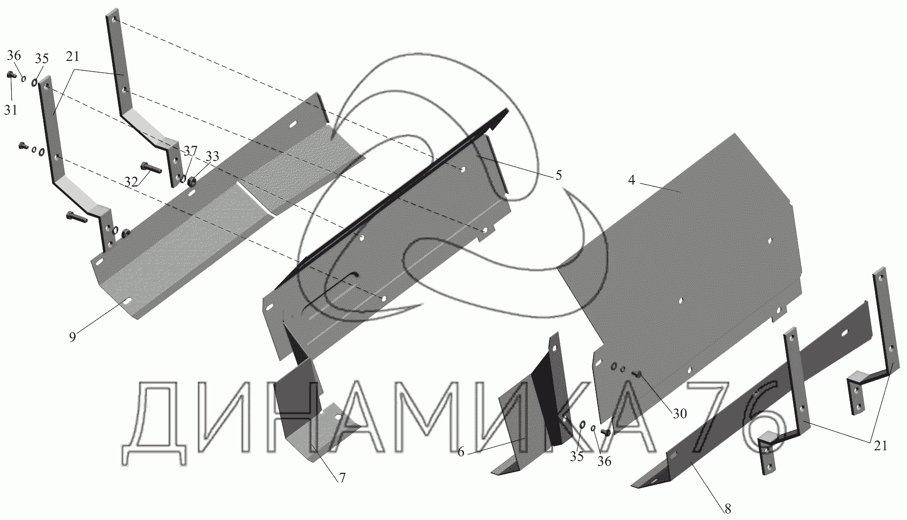 Перечень комплектующих от Установка шумоизоляционных экранов 555102-1016003 на МАЗ-651705