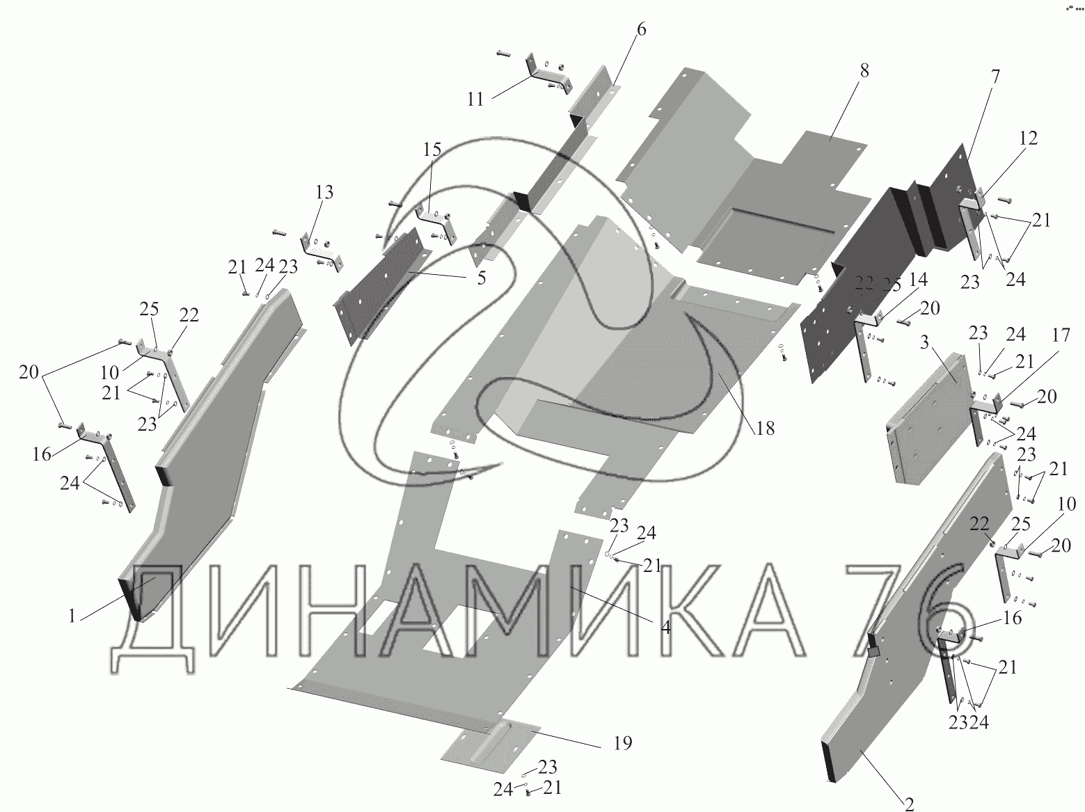 Схемы запчастей предназначены для справочных целей! Мы продаем не все запчасти от Установка шумоизоляционных экранов 631708-1061004 на МАЗ-651705, представленные в этом списке.