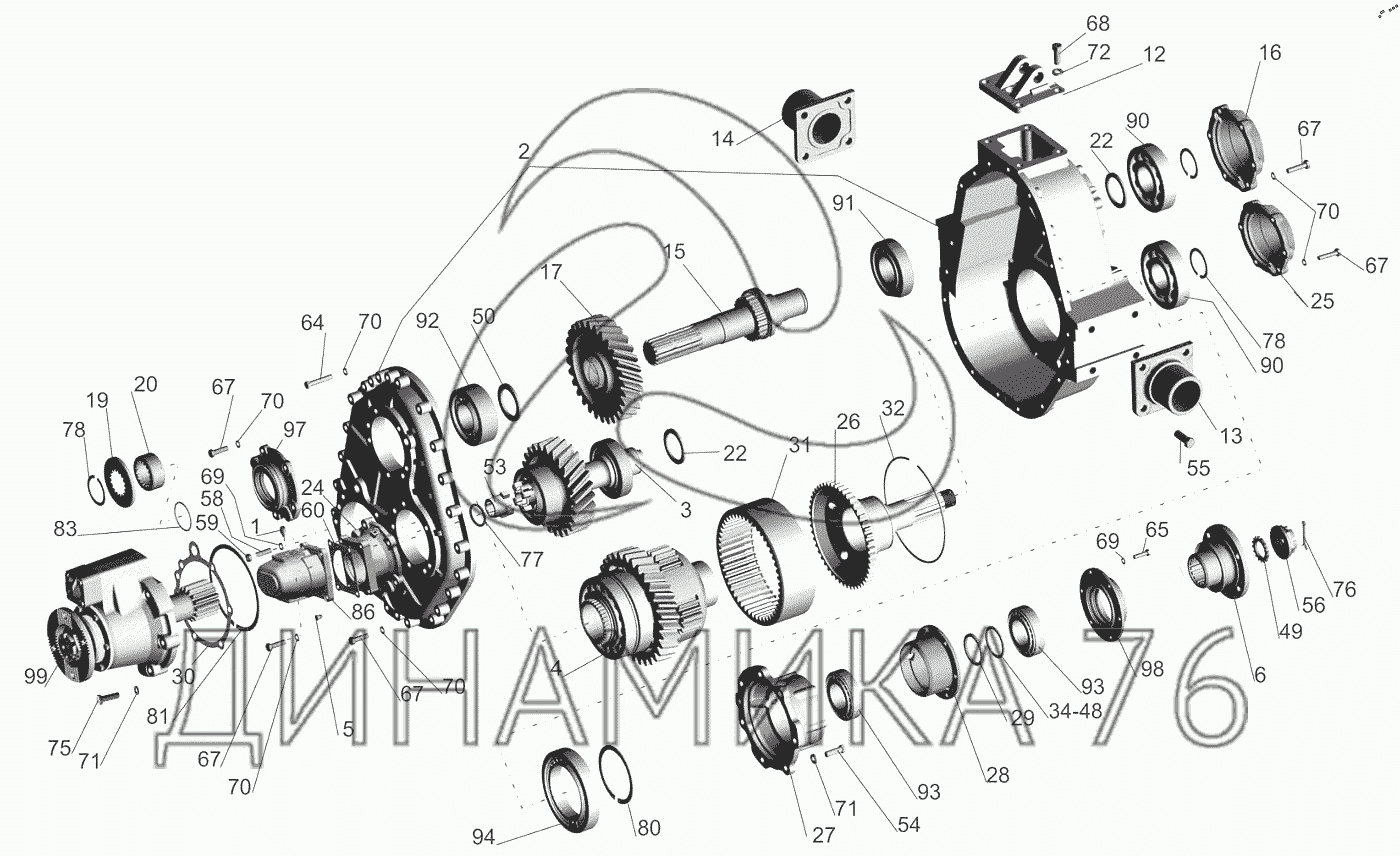 Схемы запчастей предназначены для справочных целей! Мы продаем не все запчасти от Коробка раздаточная 651705-1800020-001, (-601) на МАЗ-6517X9-0000410, представленные в этом списке.