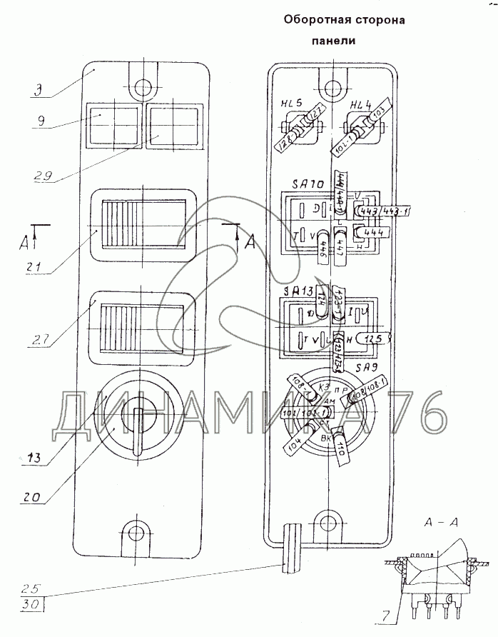 Перечень комплектующих от Панель переключателей на МАЗ-74131