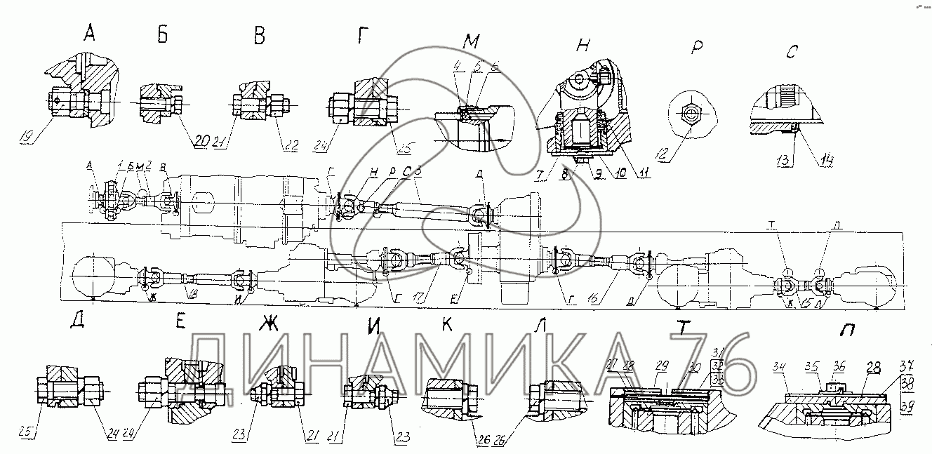 Передача карданная трансмиссии, валы карданные — МАЗ-74131: