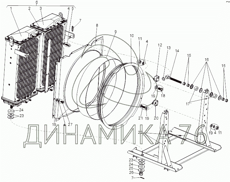 Схемы запчастей предназначены для справочных целей! Мы продаем не все запчасти от Радиатор с балкой на МАЗ-74131, представленные в этом списке.