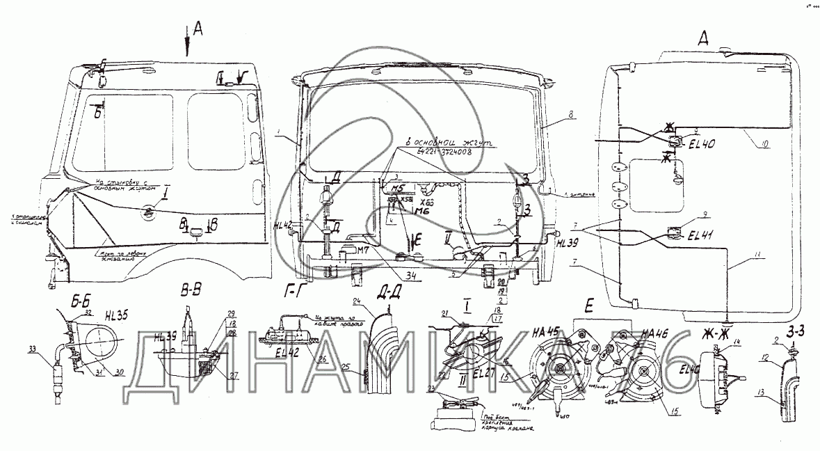 Установка электрооборудования на кабине на МАЗ-74131 (до 1996 г.)