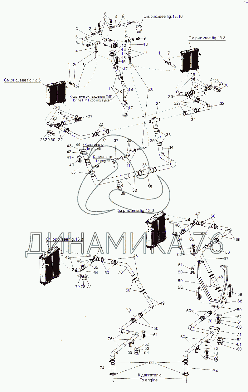 Схемы запчастей предназначены для справочных целей! Мы продаем не все запчасти от Установка трубопроводов системы охлаждения двигателя на МАЗ-74131, представленные в этом списке.