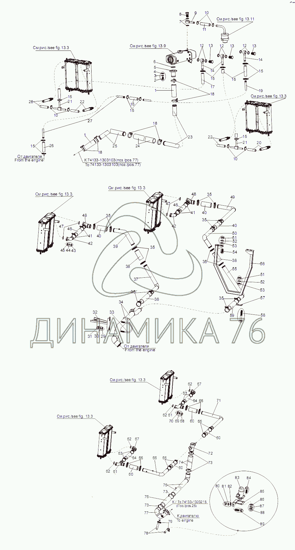 Схемы запчастей предназначены для справочных целей! Мы продаем не все запчасти от Установка трубопроводов системы охлаждения двигателя на МАЗ-74131, представленные в этом списке.