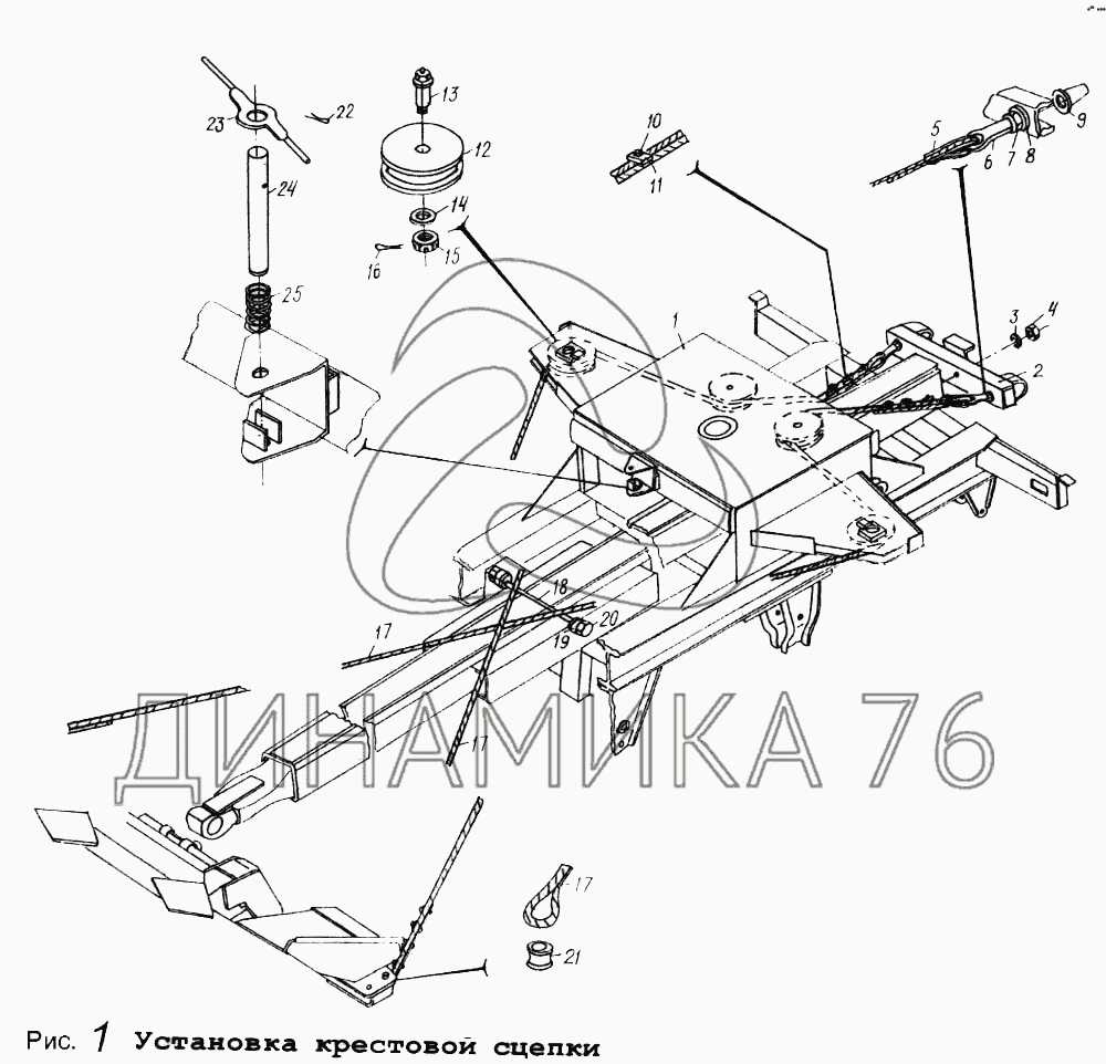 Установка крестовой сцепки — МАЗ-9008: