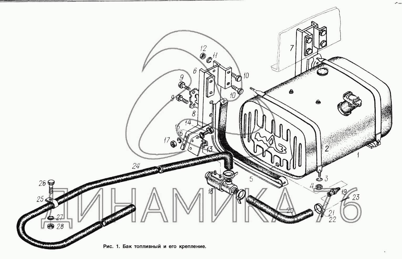 Перечень комплектующих от Бак топливный и его крепление на МАЗ-93866